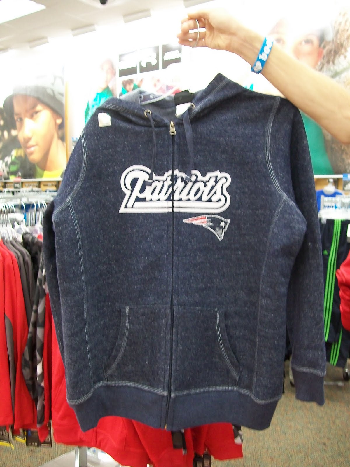 Melissa and I ventured out once again, this time to a neighborhood store called Bob’s in search of a Patriots hoodie. I found one I really liked but they did not have it in my size. This was probably just as well because the tag said $59.99. I suppose the official NFL sticker may have had something to do with this outrageous price.