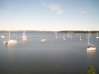 As we passed various picturesque towns in Connecticut and Rhode Island, I was wishing I had the window seat so I could make better digital captures. My seatmate graciously pulled back in his seat each time I aimed my camera at the window, but it would have been so much better if I’d been able to just point and shoot. In answer to my wish, the pleasant young man left to join a friend who came aboard so I was able to move over for a better view.